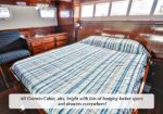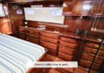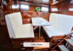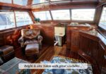 Her salon gleams with rich mahogany and brass accents. The aft deck invites long evenings at anchor. Below, a three-stateroom, two-head layout provides exceptional comfort for extended cruising or liveaboard life.