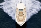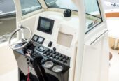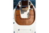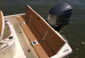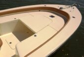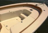 Large anchor locker, PORT and STBD lockable rod storage boxes, high performance leaning post with rod holders, transom ladder and trim tabs. Optional features include rear deck jump seat cushions, port aerated bait well and a potti , T-top/glass enclosure, just to name a few.