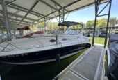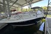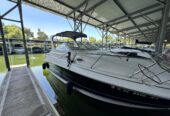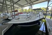 The Larson 260 Cabrio is a mid-sized Express cruiser known for its line of sporty, family friendly vessels. The Boat measures 26 feet in length and offers comfortable accommodations for overnight trips or extended stays on the water. This 260 cockpit offers open seating that can be configured for lounging, cruising, or entertaining, and the aft seat stows to create more deck space. The 260 cabin features over 6-feet of headroom for a spacious feel. A V-shaped dinette area converts easily to a V-berth. The galley has a molded sink, single-burner cook top, microwave, coffee maker and dual voltage refrigerator. The head features a Vacu-flush head, vanity with sink and wet head shower. The boat has been recently buffed an has new bottom paint with $5,600 in maintenance. This boat also comes with an appropriate and well functioning trailer that has recently had new carpet installed on the bunks, bearings and brakes serviced. The picture featuring the trailer was taken approximately 3 weeks ago.