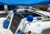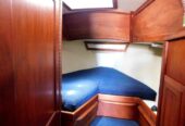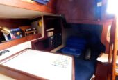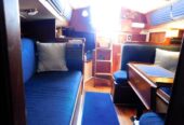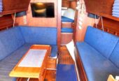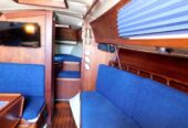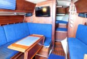 Entering via the companionway steps, the U-shaped galley is situated to port. Across to starboard is the navigation station, with a good sized quarter berth aft. Moving forward into the salon a spacious U-shaped convertible settee seats 4 comfortably at the dinette table, and the convertible settee across seats another two. The v-berth follows in the bow, with the head compartment adjacent to port, comprising a manual head, washbasin and vanity. There are sleeping accommodations for 5-6 in total.