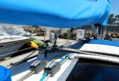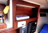 Everything is very neat and clean. The upholstery is in great condition, and the interior wood has been well cared for. Teak and holly sole throughout, and all ports and windows have accordion blinds. There is ample storage throughout, including a wet locker that drains directly to the bilge. Insignia TV, Bose speakers and Dual MXD337B Bluetooth/mp3/radio.