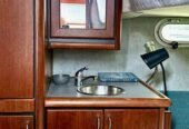 The Bayliner 3288 Motoryacht Cabin features two double staterooms, a full electric galley, a complete head and a spacious salon. The self-bailing cockpit includes a full-width transom boarding platform.
