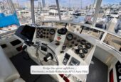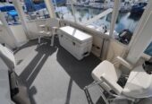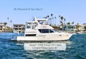 The layout of this Aft Cabin Cockpit Motoryacht makes her the ideal cruising yacht and perfectly comfortable at Catalina or at home in her slip at Shoreline Marina. She is bright and airy with a spacious and comfortable salon, full down-galley, and dinette. The forward stateroom is comfortable, bright and well ventilated with 6’6” of headroom and a queen berth. Adjoining the forward stateroom is a full head with shower. The aft Owners stateroom is spacious and bright with plenty of headroom but with the added features of a large ensuite head and shower and a sliding door that opens onto the cockpit. The layout of the command bridge makes for the best seating for friends and family when underway with spectacular views. The enclosed sundeck and cockpit makes Joyful a well-rounded motor yacht that the entire family will enjoy!