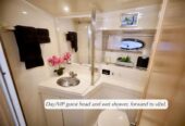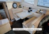 Aft Cabin Motor Yachts have many advantages. Two cabins separated by the galley and salon provide privacy and the aft cabin is full beam making it spacious and comfortable. But when you add the cockpit you now have easy boarding access via the swim step and transom gate, sliding patio style doors off the aft cabin, a staircase to the sundeck, room to fish or sit out for morning coffee and easy access to the dinghy. It’s no wonder this design is so popular and sets it aside from any other aft cabin design.