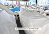 One of the great advantages of aft cabin designs is the sundeck. It’s a perfect place to relax and enjoy the view the sundeck enclosure is also 60 mil Makrolon and features a center sliding window. There is wet bar and ice-maker. Both the bridge and sundeck have Infinity Luxury Woven floor covering that is comfortable, durable and easy to clean.