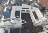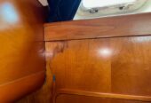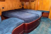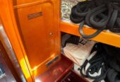 The efficient sail plan and the high-tech lead bulb-wing keel guarantee performance under sail that is out of the ordinary. Her six-cylinder engine will silently take over and power her along at an impressive cruising speed. The Beneteau 62 offers many choices to adapt to your requirements. The Esprit Du Nord. has a shallow draft bulb-wing keel. Her accommodation and interior finish beautifully with forward or aft owner’s cabin, immense saloon, large totally independent galley and a choice of a wide range of woods: Finnish in teak. Her equipment is also the very best of its kind. A 300 litre refrigerator, 160 litre freezer, 1000 litre of fresh water and a water maker with a capacity of 180 litre-hour guarantee the necessary autonomy for the longest crossings. The deck layout is at one and the same time simple, elegant and efficient: the two separate cockpits allow guests to relax in comfort without impeding any maneuvers, whilst allowing a small crew to control this powerful hull with surprising ease. The magnificent teak deck has varnished mahogany toe-rails and integral fairleads,( needs attention) as well as a remotely controlled opening transom. The hydraulic and electric systems include electric winches and furling genoa, hydraulic adjustment of the rig tension and the mainsail. Any maneuver becomes child’s play. The Beneteau 62 is the quintessential yacht, embodying all Beneteau’s experience acquired over more than a century on all the oceans of the world. SHE NEEDS A NEW OWNER TO TAKE CARE OF HER URGENT BECAUSE OF HEALTH ISSUE.